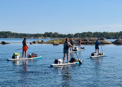The Archipelago Expedition requires an advanced level of fitness and paddling skills. It is aimed at the experienced paddler who has been on SUP expeditions before and is looking for the next level experience. To participate in this SUP expedition, you should have experience paddling in open water, including handling waves, chop, and cross-chop conditions. You’ll need to manage your board effectively in varying wind directions (upwind, downwind, and crosswind) and have completed at least one overnight expedition where you packed and paddled with gear on your board. Flexibility and a positive mindset are important as conditions may change, requiring adaptability. You should be comfortable paddling up to 20 km per day for five consecutive days, maintaining speed even against headwinds, and paddling for up to an hour without a break. Additionally, you should be able to spend hours on your board, move easily from standing to knee paddling, mount and dismount the board in variable conditions without issue, and self-rescue if you fall off. Read the full requirements here.